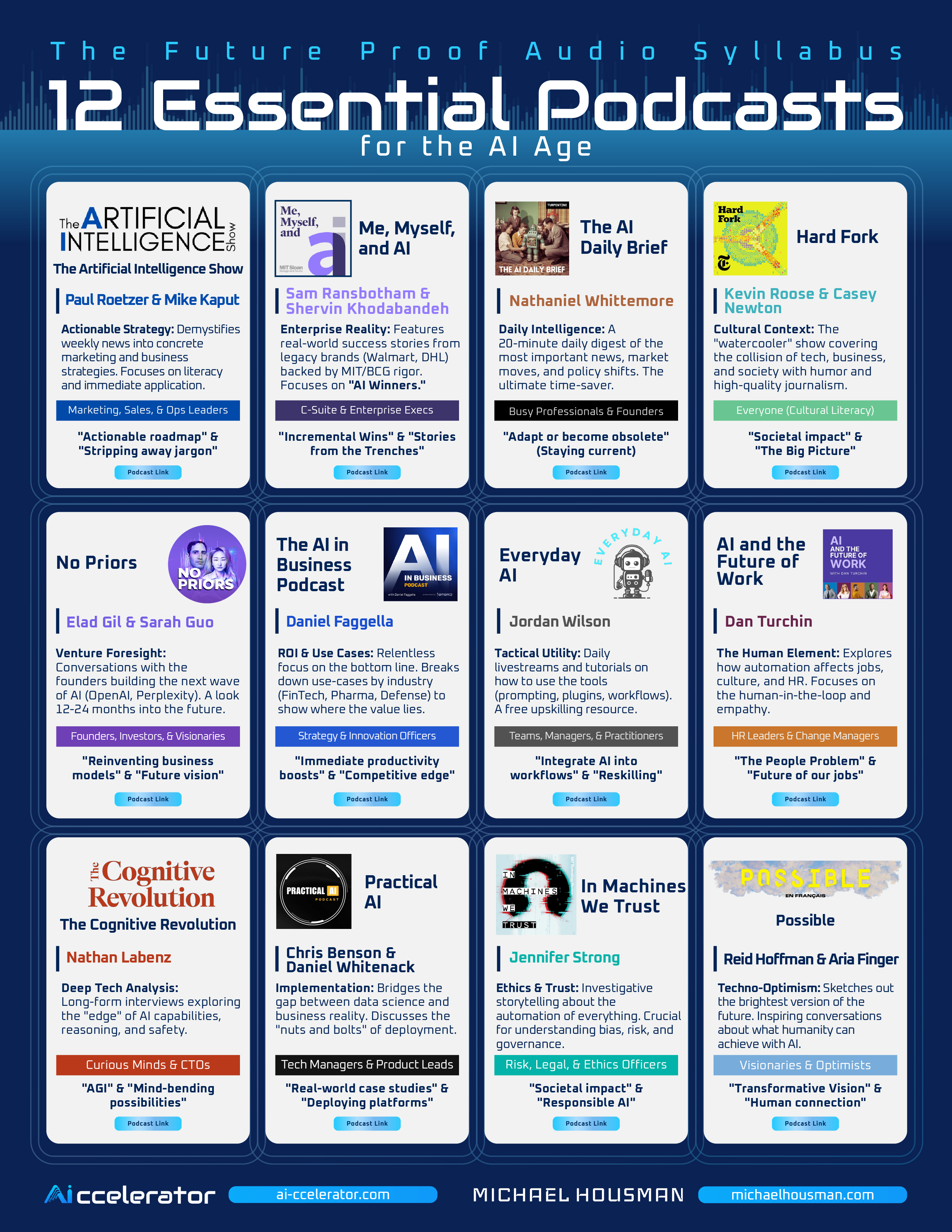 The Future Proof Audio Syllabus: 12 Essential Podcasts for the AI AgeJanuary 26, 20263.9 sec readTags: Technology / Artificial IntelligencePlease request the content to receive a PDF with clickable links.Request ContentShare: