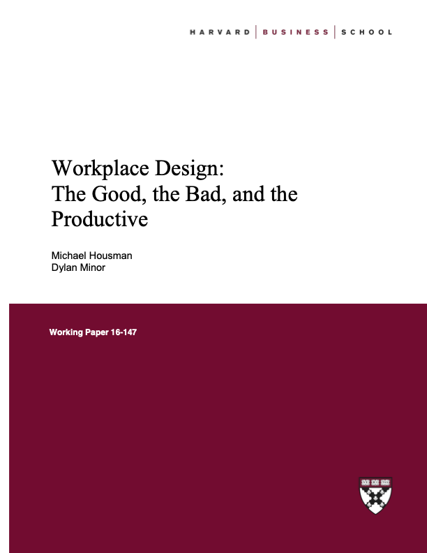 In the Harvard Business School working paper “Workplace Design: The Good, the Bad, and the Productive”, Michael G. Housman and Dylan B. Minor examine how physical proximity in the workplace shapes employee performance through spillover effects.
